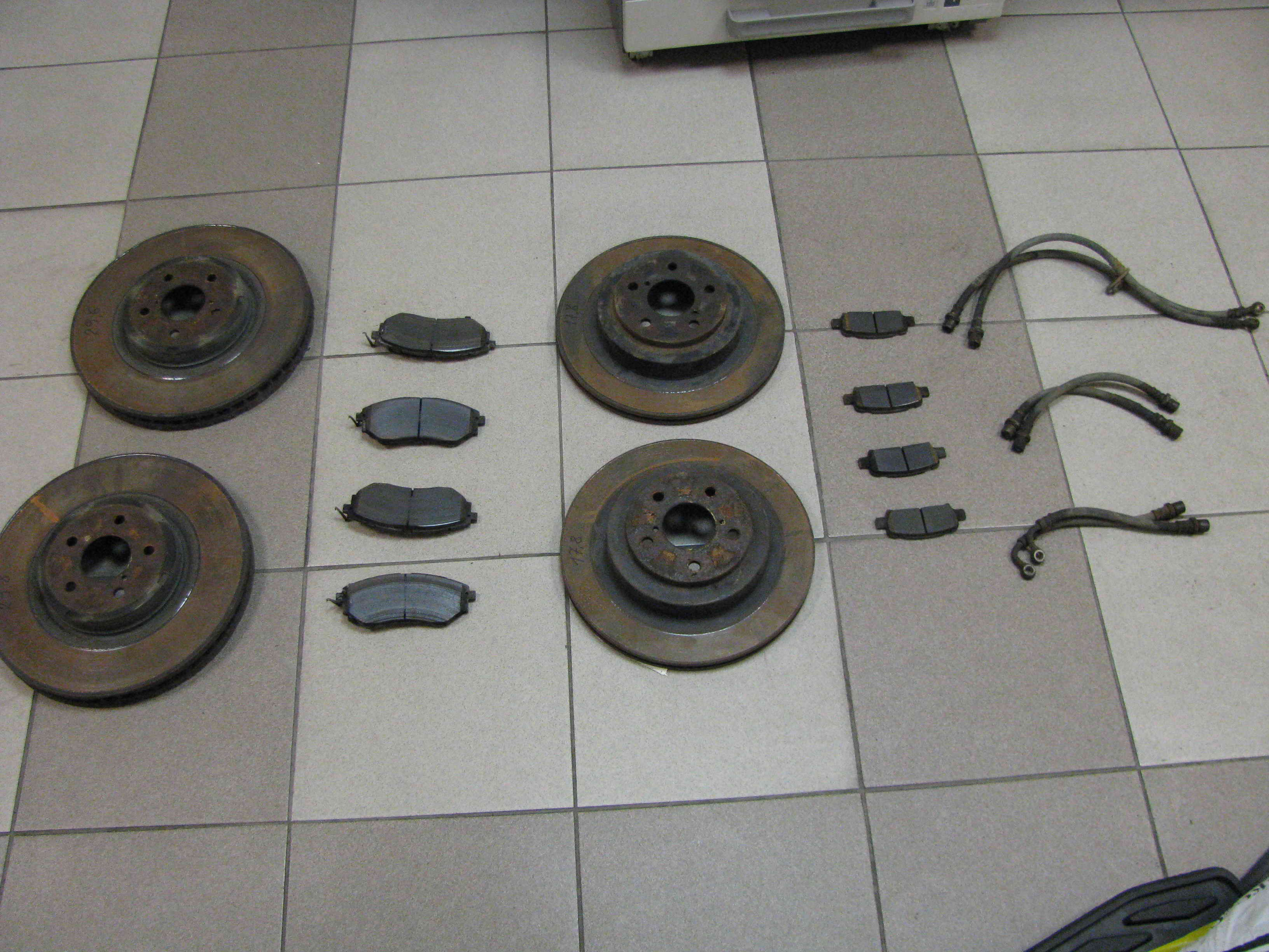 - Тормозные диски с 2,5 GT. Морда (315мм) остаток 29,8/29,6 мм., Zёпа остаток 17,8/17,8 мм. + колодки (пол выработки) + шланги. Всё сток. Живое. 5000 р. за комплект.