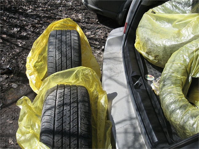 хороший остаток протектора, резина не шумная, не жёсткая, наряду с индексом скорости V=240км\ч хорошо справляется с грунтом и гравием, стоика к аквапланированию, износоустойчивы, отличная компромисная резина не в пример штатному Геоландеру.