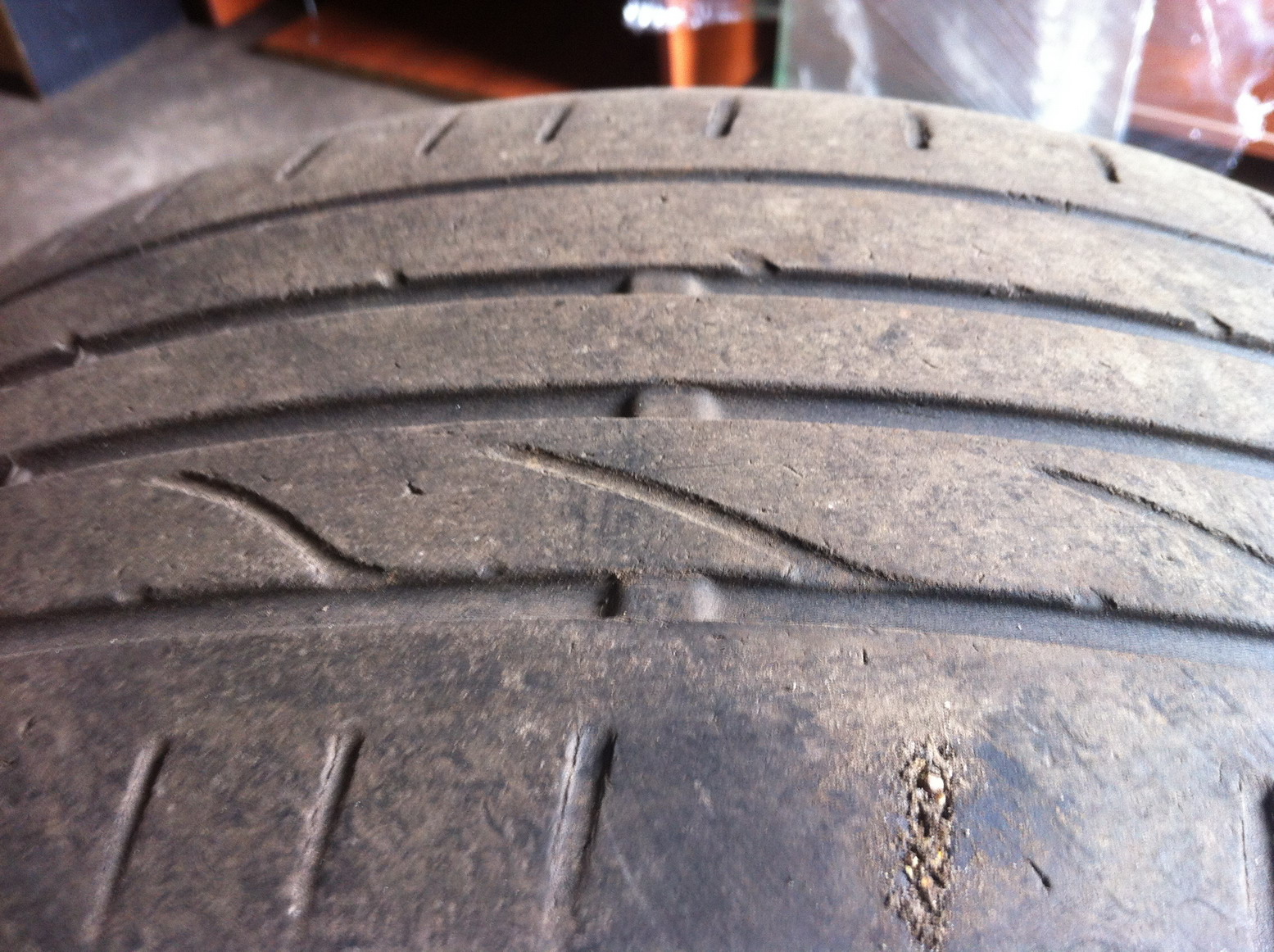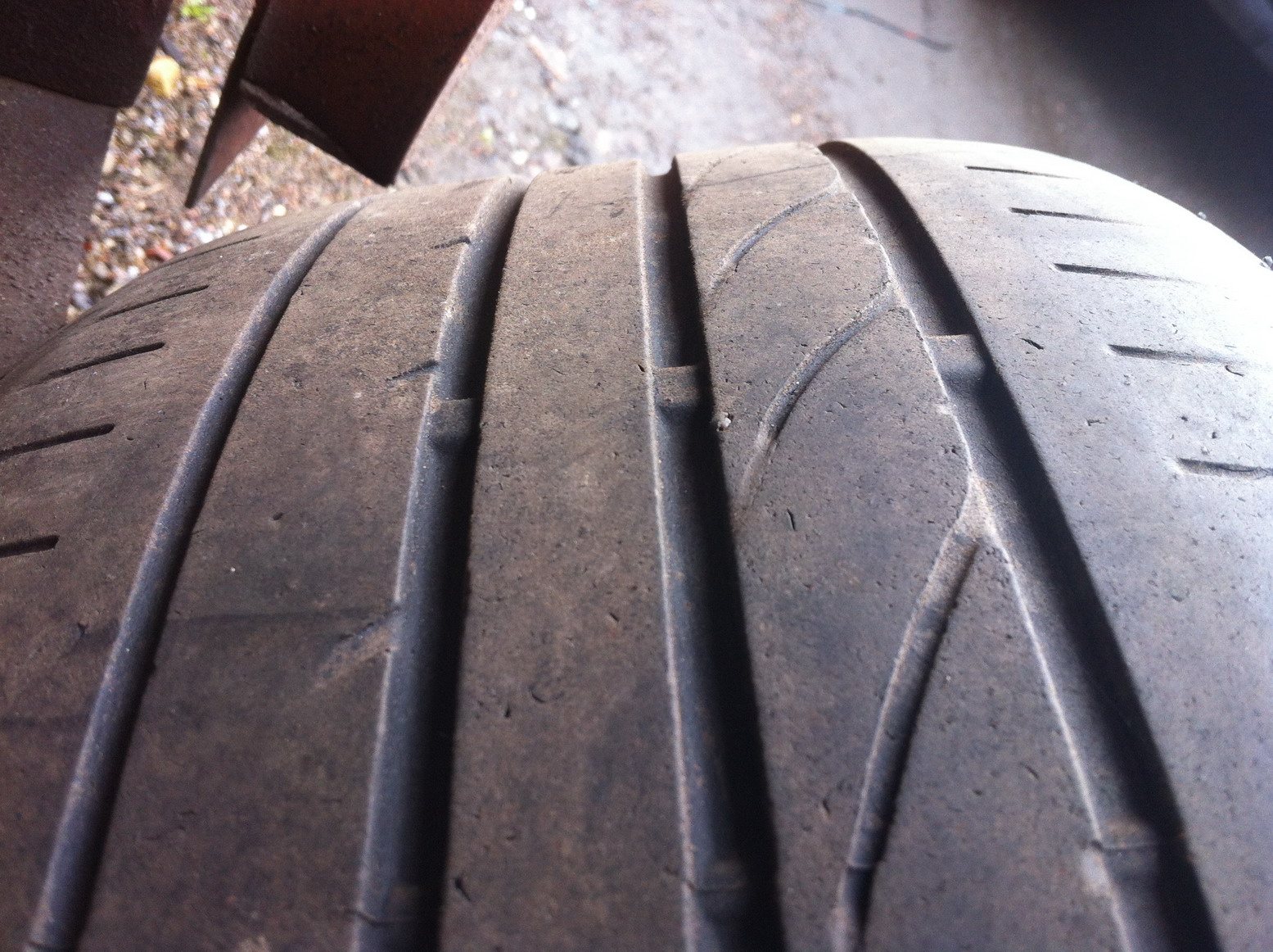 Пока терпит! Там просто мелкие порезы на одном колесе, после проезда по трамвайным путям
