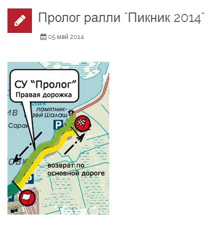 Для пролога ралли (16 мая 2014 г) будет использована велосипедная дорожка справа от основной дороги к памятнику-музею "Шалаш им. Ленина" (г.Сестрорецк) - 16 мая 2014 г. с 16:00 Техническая инспекция с 16:30 Пролог