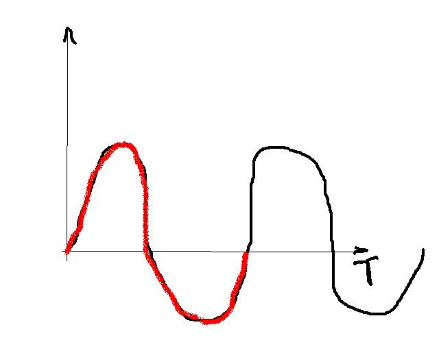 Длина волны - это расстояние по оси Х, от начала до конца "красного"... (меня уволят за такое объяснение)...