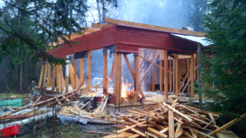 очень много досок. вот нашла фото. дом разобран до фундамента. справа за елками еще кучи 4 разных досок соответственно - вагонка со стен и потолков (снимать старались аккуратно, сразу сортировали целые и покоцаные, длинна от 1,5 м до наверное метров 5)