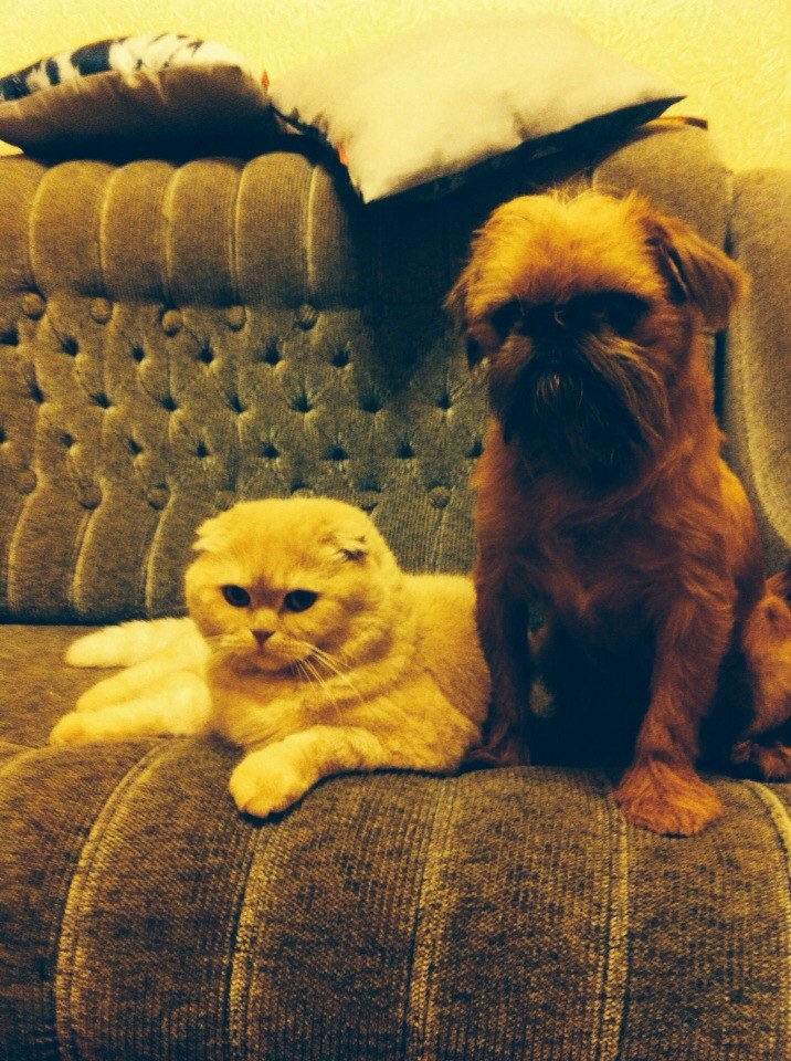 выставки),без малого, 5 лет.вислоухий шотландец ,кремового окрасасправа:Руби Аль Гиз Мачо Белло по паспорту(Рубик по жизни),знаком некоторым клубням по летней Субатусе этого года,возраст - год и 2 месяца,брюссельский грифон.