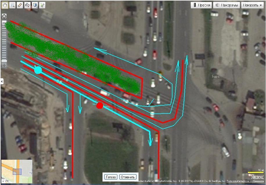 Предлагаю очередной. На прикрепленной картинке схема организации движения на перекрестке Просвещения-Руставели. Вроде я нигде не ошибся, но сегодня вечером еще проеду, посмотрю.