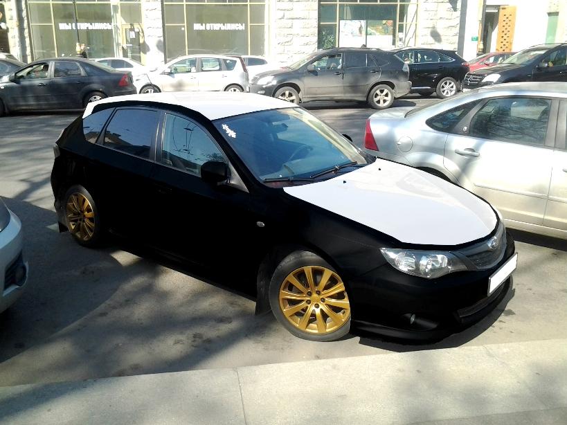 Вот еще неплохо. Здесь по линии капота серый цвет, а в случае с импрезкой лучше отступить сантим от линии капота.