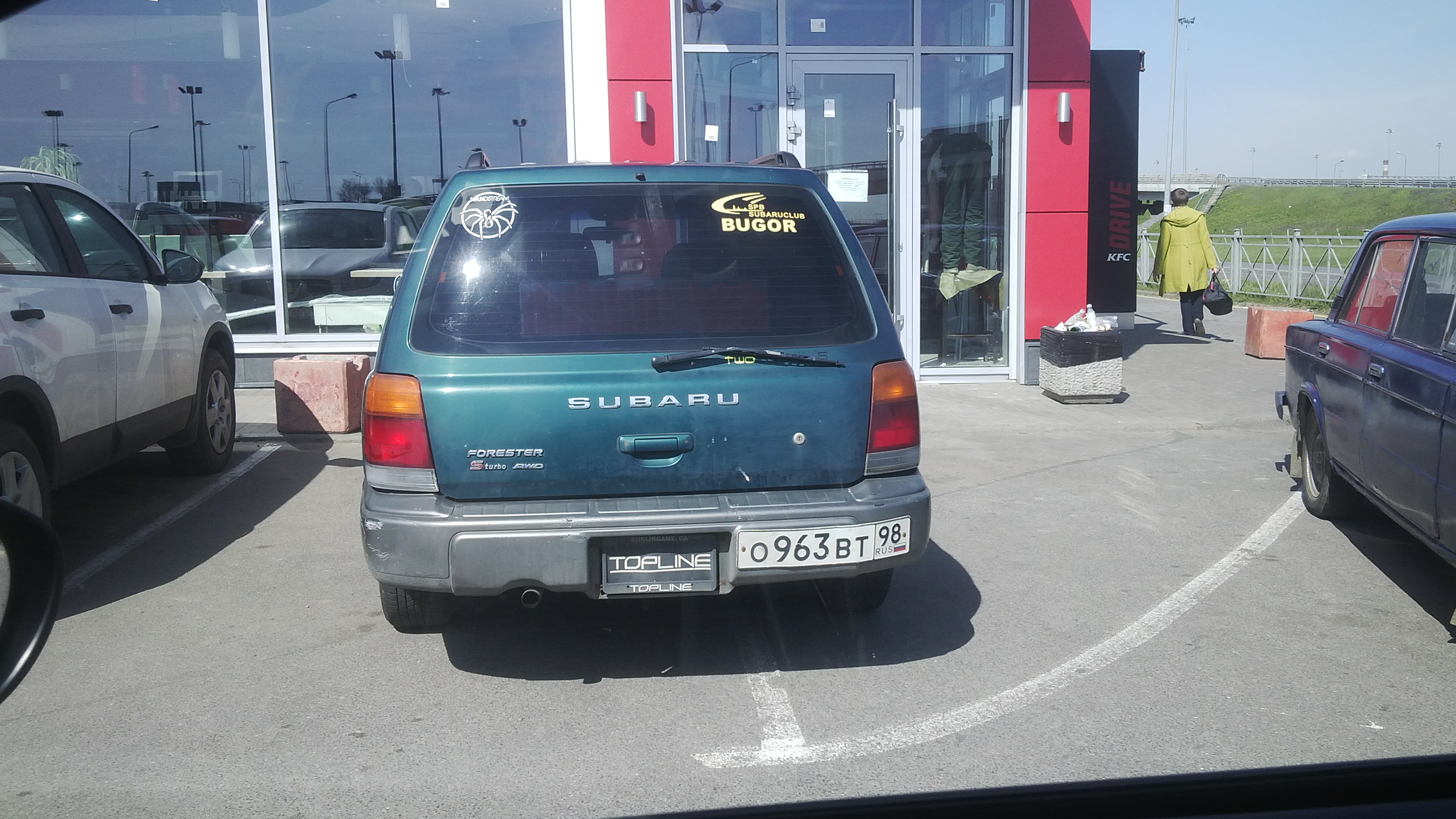 Полтора часа назад видел сочный турбо форь SH синий на золотых дисках 858 на пулковском. Наклейку не углядел - далековато было.