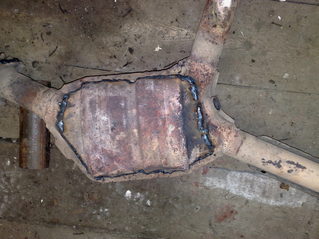 При пробном запуске этой системы, оказалось, что стрекочущий звук доносился не из-за прогоревшей прокладки, а из трещины в сварном шве приемной трубы. И здесь всё было исправленно.