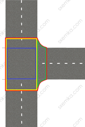 в нашем случае, мы выезжали со двора , и переезжали дорогу ( "карман" или дорогу, с этим тоже сложно разобраться) с односторонним движением под углом примерно 45 градусов.