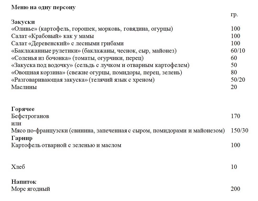 - Питание в столовой или свой термос с бутерами в течении спортивного дня выбирайте сами (прайсы см. ниже). Но нужно понимать сколько народу будет оставаться на ночь и сколько будет пользоваться столовой. И это нужно решить сразу при бронировании.