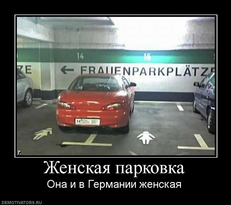 Могу судить по своему двору: часто такие ситуации, как на фотографии "женской парковки", бывают когда машины раньше стояли широко, и третья встаёт между ними, а потом две крайние уезжают, а вместо них приезжают другие, которые становятся уже поближе к краям, в результате такие пробелы. Хотя и у нас было: один раз QQ стояла каким-то образом на двух местах несколько дней, и один раз лендровер на парковке на краю проезда (когда машины параллельно тротуару) стал на противоположной стороне. Для обеспечения возможности проезда были сокращены где-то три машиноместа